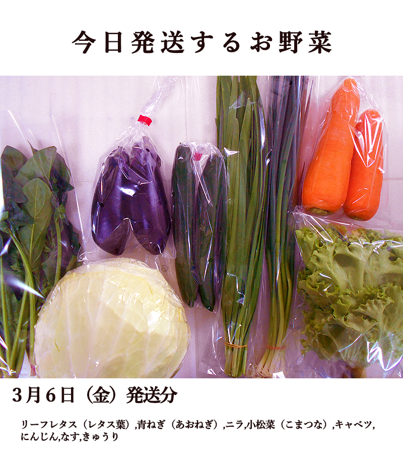 【なにが入っているの?】その日に発送したお野菜の画像をアップいたします。発送日ごとに更新させていただきますので、内容はこちらでご確認下さい。