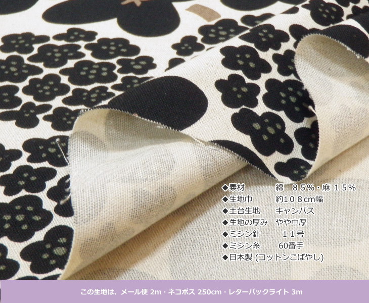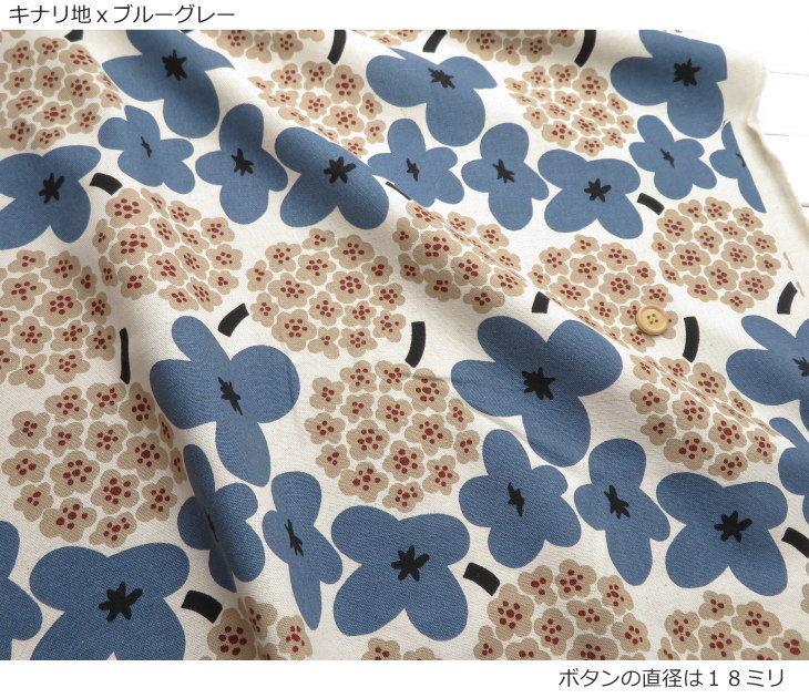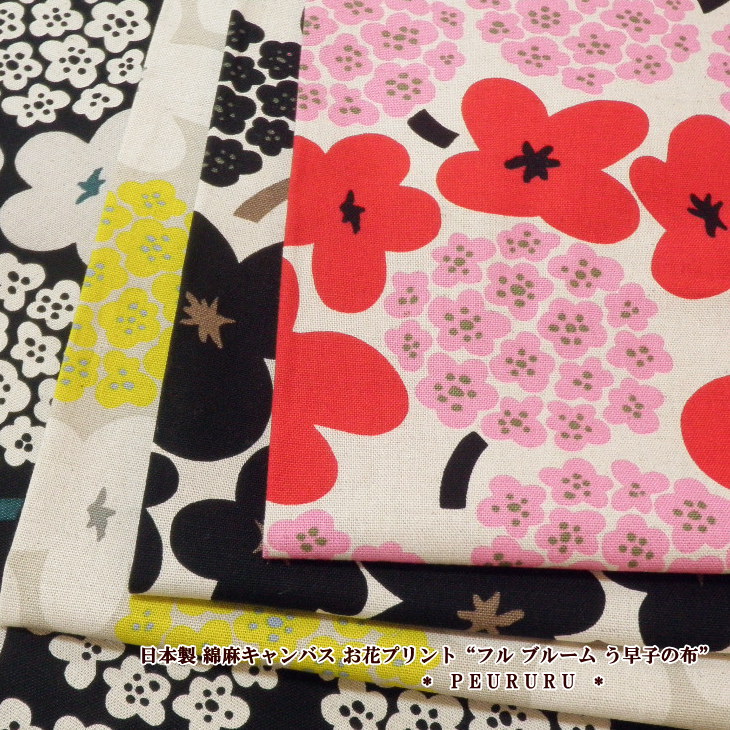 綿麻キャンバス“フルブルーム”お花のプリント う早この布