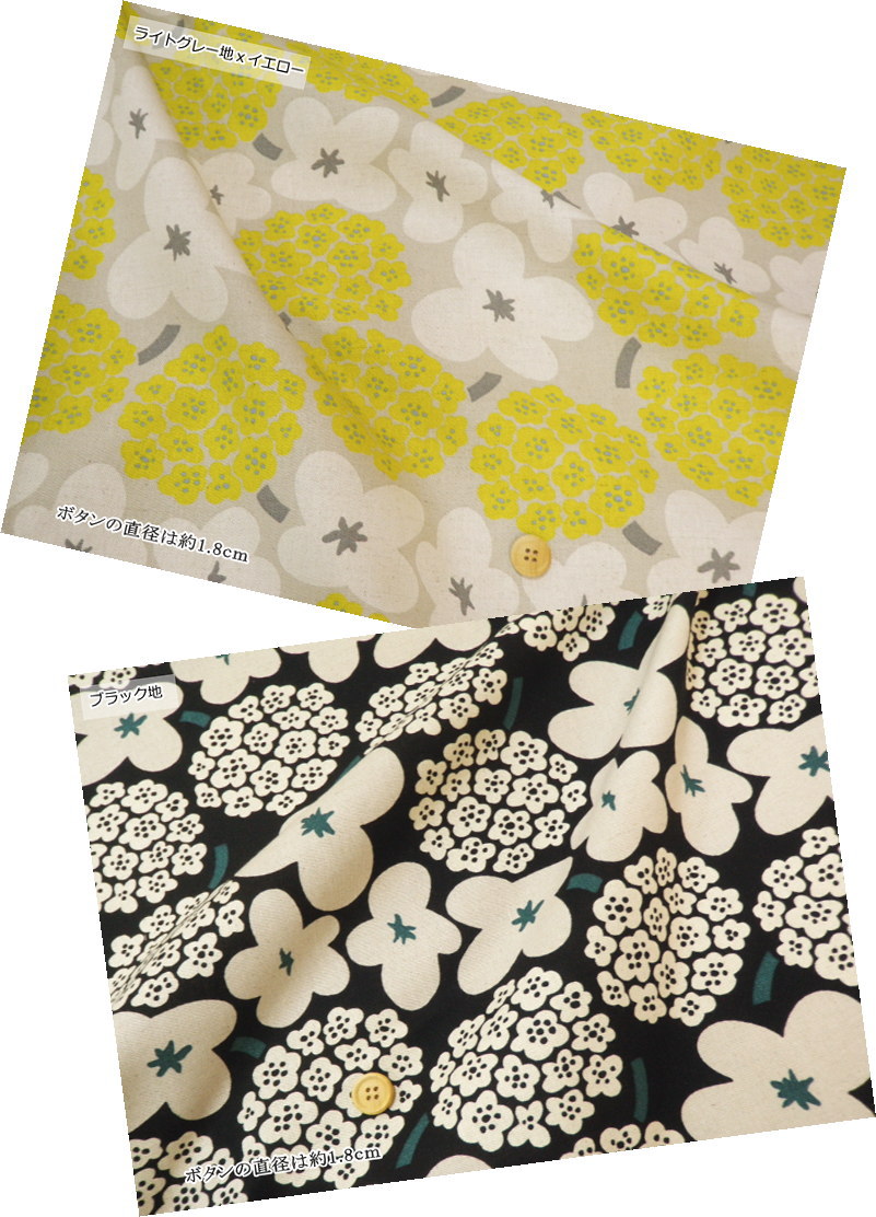 お洒落なお花柄のコットンリネン生地。 バッグやエプロンに